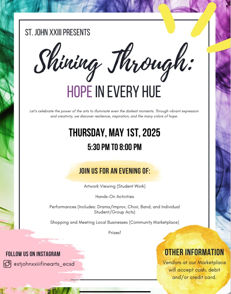 - May 1 – Fine Arts Nights at STJ – see posters below