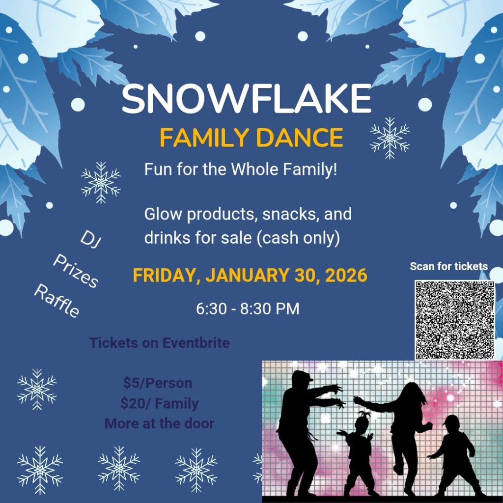 - January 30 – Snowflake Family Dance at 6:30 pm – see info below